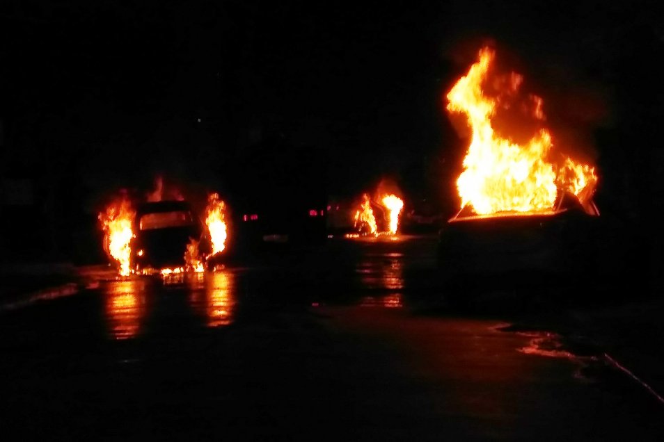 Así quedaron los vehículos quemados por encapuchados en Macul