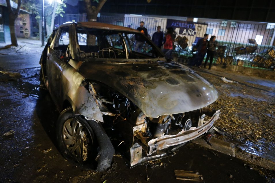 Así quedaron los vehículos quemados por encapuchados en Macul