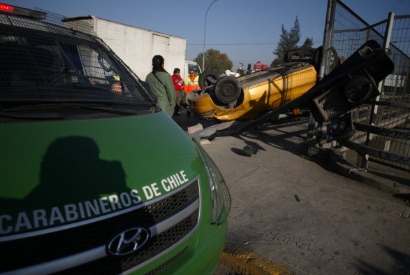 Tópicos: País | Policial Así quedó el auto que volcó en la Ruta 5 Norte Publicado: Domingo, 14 de Julio de 2013 5 de 11 Un automóvil chocó este domingo con un semáforo, volcándose en las barras de contención en las intersección de Departamental con Ruta 5 Norte. Un automóvil chocó este domingo con un semáforo, volcándose en las barras de contención en las intersección de Departamental con Ruta 5 Norte.UPI