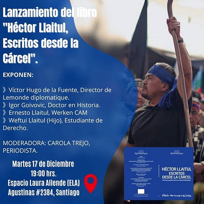 En el lanzamiento de la obra participaron dos hijos de Héctor Llaitul: Ernesto y Weftui, quienes adelantaron que próximamente, en enero, "recurrirán a instancias internacionales para lograr su excarcelación", consignó hoy El Mercurio.