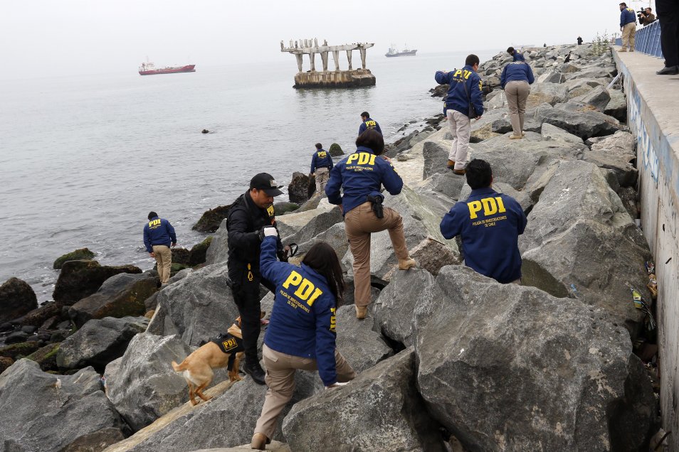 Efectivos de la PDI y de la Armada continuaron con sus labores de rastreo y búsqueda de más restos humanos en el sector de Muelle Barón de Valparaiso, tras el hallazgo de un torso masculino en el sector de Muelle Prat la noche del miércoles pasado.