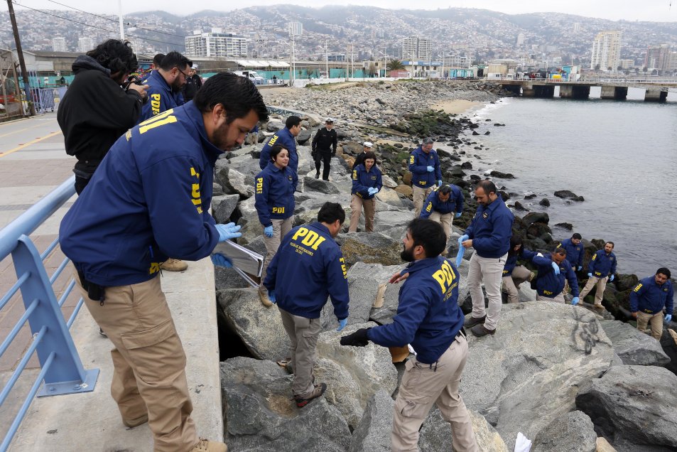 Efectivos de la PDI y de la Armada continuaron con sus labores de rastreo y búsqueda de más restos humanos en el sector de Muelle Barón de Valparaiso, tras el hallazgo de un torso masculino en el sector de Muelle Prat la noche del miércoles pasado.