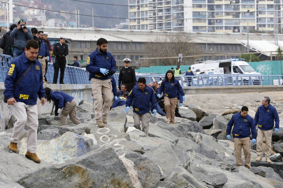 Efectivos de la PDI y de la Armada continuaron con sus labores de rastreo y búsqueda de más restos humanos en el sector de Muelle Barón de Valparaiso, tras el hallazgo de un torso masculino en el sector de Muelle Prat la noche del miércoles pasado.