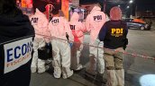 Personal de la Brigada de Homicidios Sur de la PDI realiza los peritajes correspondientes al vehículo que fue atacado a disparos la madrugada de este martes, en la comuna de La Granja, tiroteo que dio muerte a su conductor y dejó en riesgo vital a su hija de 7 años.