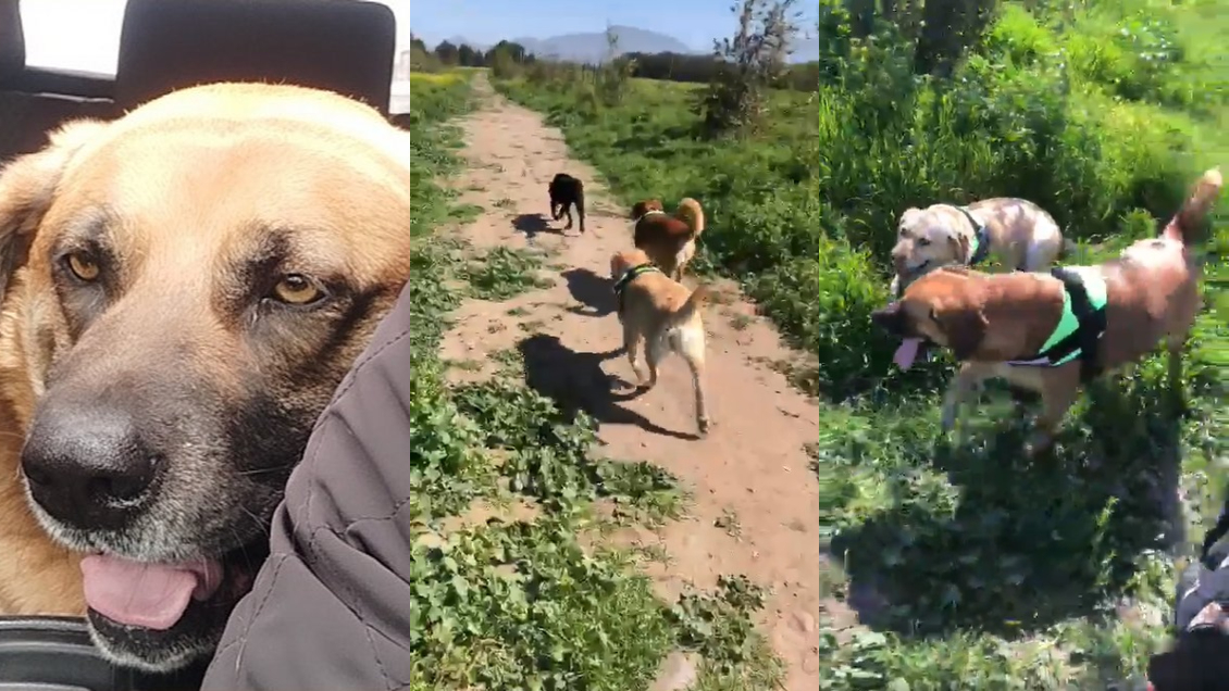 El rescatista compartió videos del perrito en los que se aprecia lo bien que se adaptó con sus nuevas "hermanas", con quienes no deja de jugar.