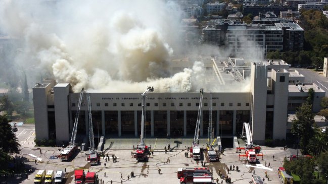 Bomberos controló un incendio de gran magnitud que se registró la mañana de este miércoles en la Escuela de Carabineros, ubicada en la intersección de Antonio Varas con Vasconia, en la comuna de Providencia.