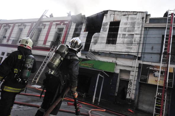 Bomberos controló el incendio que afectó esta madrugada a una bodega del local comercial "Licoval", ubicada en calles Diego Portales con pasaje Quillota, en Valparaíso.