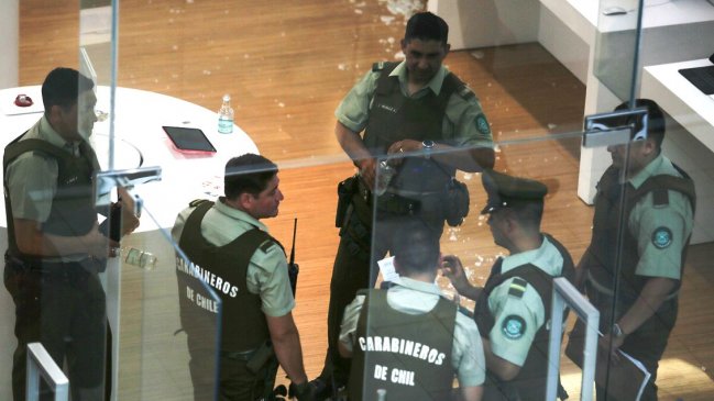 Ocho sujetos fueron detenidos -seis de ellos menores de edad- por su presunta participación en un "turbazo" que este lunes afectó a una tienda de la empresa Movistar ubicada al interior del Mall Plaza Egaña, en la comuna de La Reina.