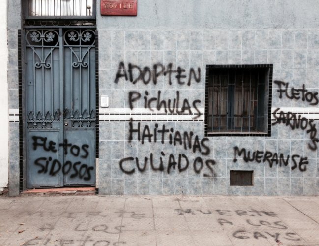 "La violencia homofóbica existe y hoy el frontis de nuestra sede es lamentablemente prueba de ello", acusó el Movilh.