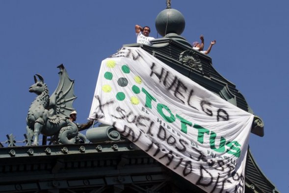 Tópicos: País | Policial Trabajadores de Tottus protestaron en el techo de la Estación Central Publicado: Martes, 6 de Marzo de 2012 3 de 7