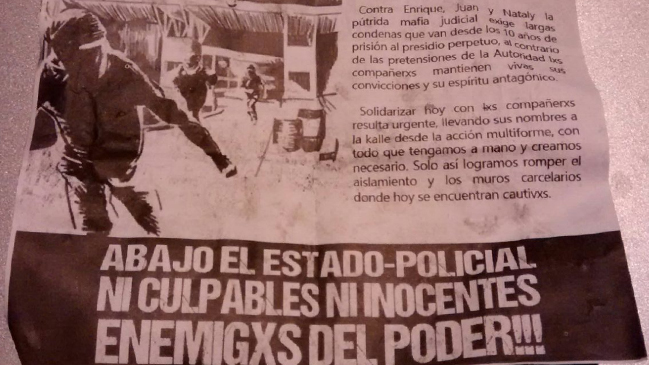 Los desconocidos lanzaron copias de este panfleto en el sector. (Foto: Felipe Salinas, Cooperativa)