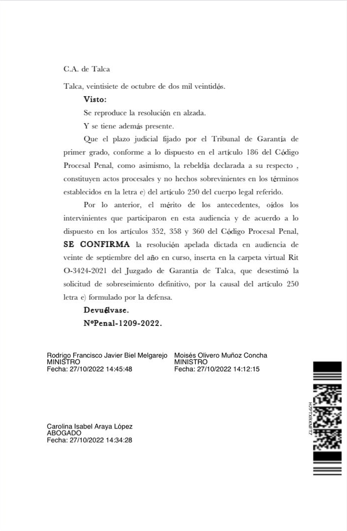 Esta vez, la Corte de Apelaciones de Talca rechazó el recurso de apelación de la Defensoría Penal Pública en favor del experito, acusado de abusar de una menor de edad.