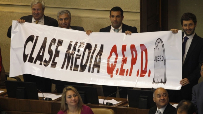 Al final de la sesión, la bancada de la UDI exhibió un lienzo que decía: "Clase media Q.E.P.D.".