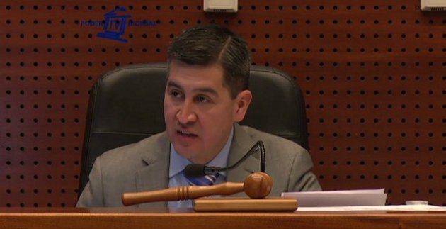 | Defensa de Novoa escucha al juez Valdés mientras expone su resolución de medidas cautelares contra el ex senador
