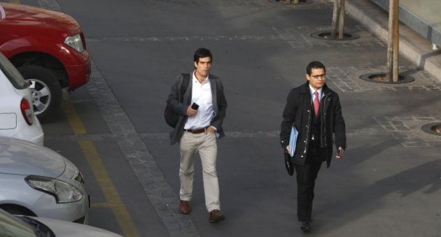 | Los abogados Matías Balmaceda y Francisco Cox, defensores del ex presidente de la UDI.