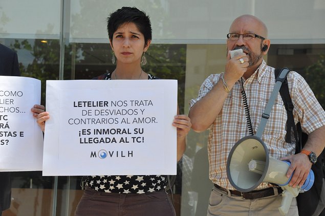 "El Senado debe explicaciones al país por haber nombrado como ministro a Letelier, lo que es el mismo que designar a un racista u misógino", señaló el Movilh, que enfatizó que su protesta fue también contra el TC.
