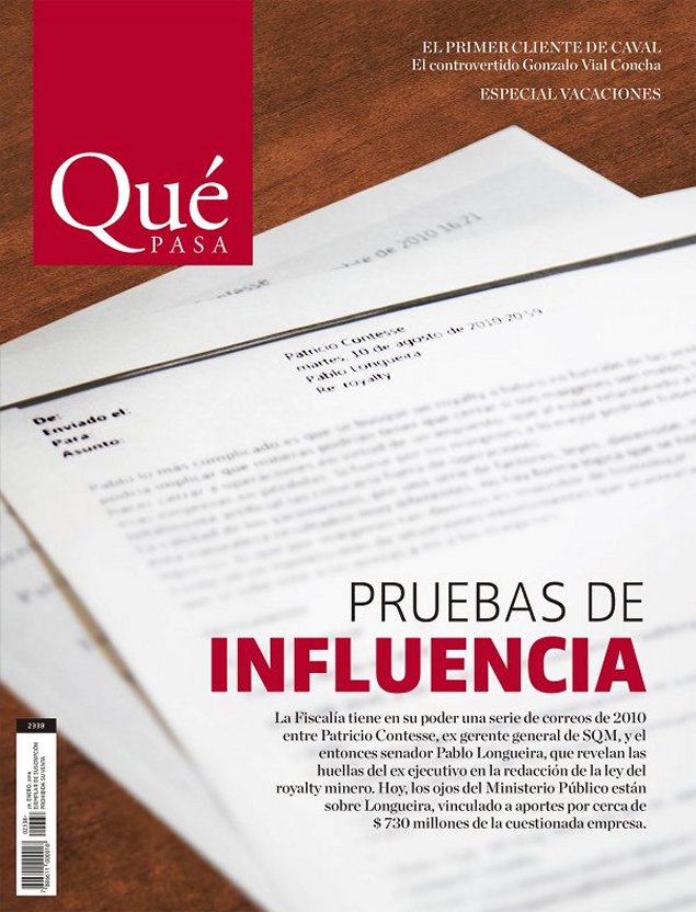 La revista Qué Pasa publicó esta noche el adelanto de un reportaje cuya versión completa dará a conocer mañana viernes, en el que se revela una serie de correos electrónicos que intercambiaron -bajo "reserva"- el ex presidente de la UDI Pablo Longueira y el ex gerente general de SQM Patricio Contesse.