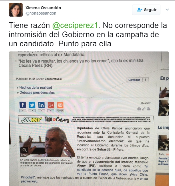 El recordatorio por el "intervencionismo" de Ximena Ossandón a Cecilia Pérez