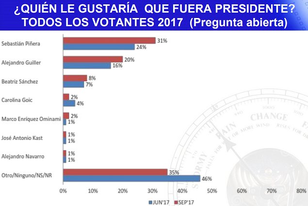 Lo anterior se favorece en la medida en que "la izquierda está dividida en dos con Alejandro Guillier y Beatriz Sánchez", quienes "tienen los viejos votantes de la Nueva Mayoría y la Concertación que han votado regularmente en el pasado"; es decir, lo votantes más probables.