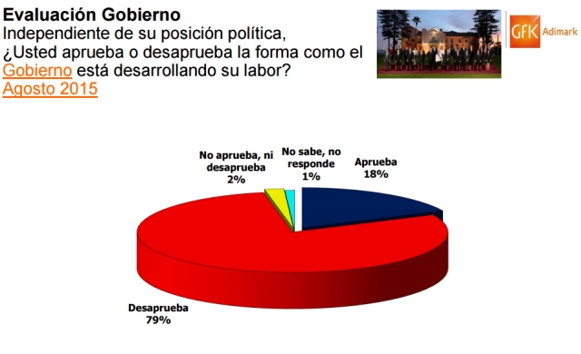 Mientras, la evaluación del Gobierno, distinto a la de la Presidenta, volvió a romper una barrera en la serie histórica, marcando un 18 por ciento de aprobación, 6 puntos menos que la aprobación presidencial, y una desaprobación de 79 por ciento.