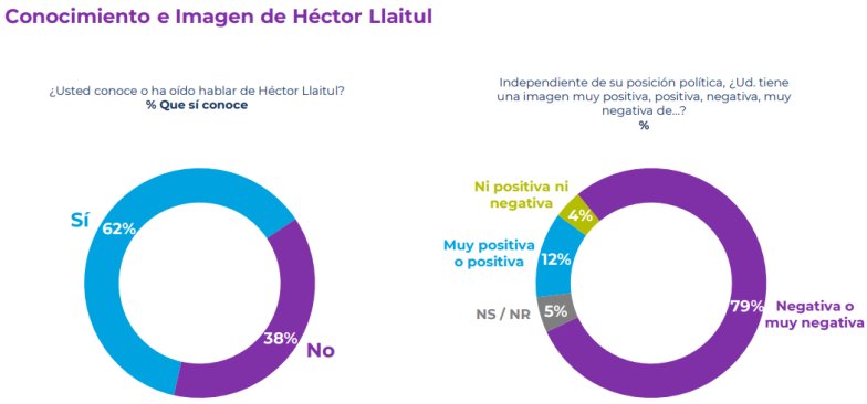 En este escenario, un 62 por ciento de los encuestados "conoce o ha oído hablar de Héctor Llaitul", y un 12 por ciento le tiene una estimación "positiva o muy positiva".
