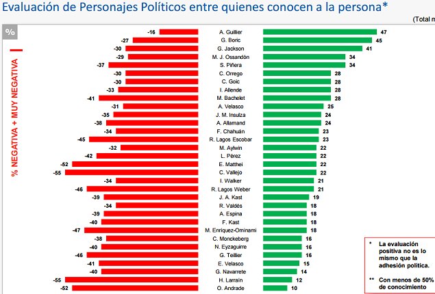 Ossandón dijo además que "lo que más importa" en su caso "es la credibilidad": "Según esta encuesta yo soy el personaje mejor evaluado de Chile Vamos, porque estoy igual que el ex Presidente, pero tengo mucho menos rechazo. Eso demuestra que estoy en el piso y no en el techo".