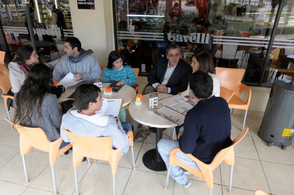 El precandidato presidencial de la UDI, Pablo Longueira, junto a su familia, comparten en la jornada previa a las primarias en la Cafetería Tavelli.