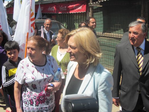 La candidata presidencial de la Alianza, Evelyn Matthei, realizó este lunes un puerta a puerta en la Población San Miguel de Piduco de Talca. La acompañaron el alcalde Juan Castro y miembros de su comando, como el senador UDI Juan Antonio Coloma.