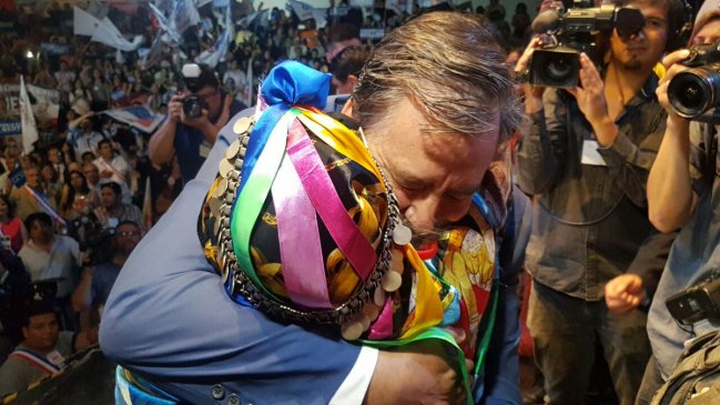 Una machi acompañó a Guillier en su proclamación (Foto: @SenadorGuillier).