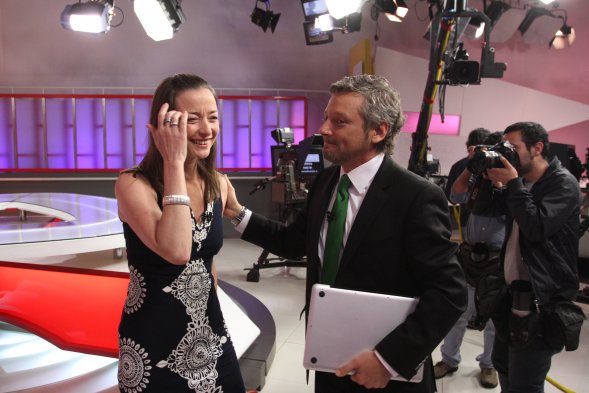 La periodista Consuelo Saavedra se separó temporalmente de sus funciones como conductora del noticiario central de Televisión Nacional para apoyar la candidatura presidencial de su esposo, el ex ministro de Hacienda Andrés Velasco.