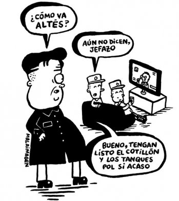 El caricaturista Guillermo Galindo, más conocido por Malaimagen, está realizando una completa cobertura de la jornada de elecciones presidenciales y parlamentarias. Lo hace, por supuesto, desde su conocido y cáustico humor.