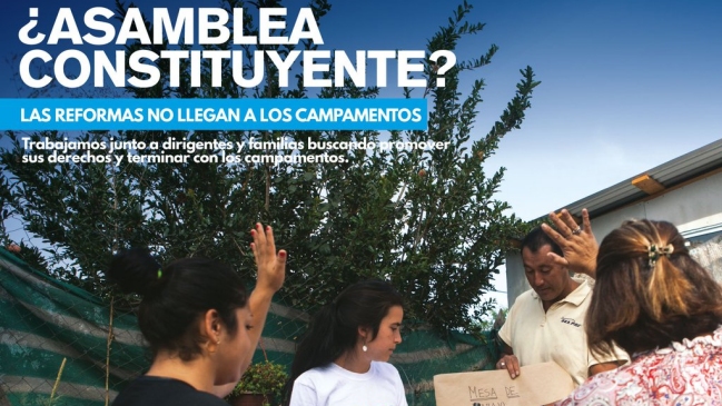 "¿Asamblea constituyente? Las reformas no llegan a los campamentos. Trabajamos junto a dirigentes y familias buscando promover sus derechos y terminar con los campamentos", dice uno de los afiches de la cruzada.
