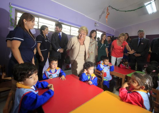 Este lunes la Presidenta Michelle Bachelet retomó sus actividades públicas, tras 20 días de vacaciones, y visitó junto al ministro de Educación, Nicolás Eyzaguirre, el jardín infantil y sala cuna Harawy en la comuna de Isla de Maipo.