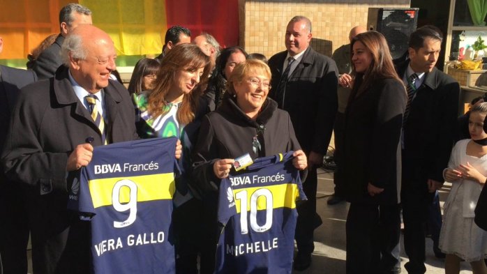 En el marco de su visita oficial a Argentina, la Presidenta Michelle Bachelet recibió este jueves un carné que la acredita como socia honoraria del club de fútbol Boca Juniors. La Mandataria recibió una camiseta con su nombre y el número 10 de Diego Armando Maradona y Juan Román Riquelme. El embajador José Antonio Viera-Gallo obtuvo la 9.
