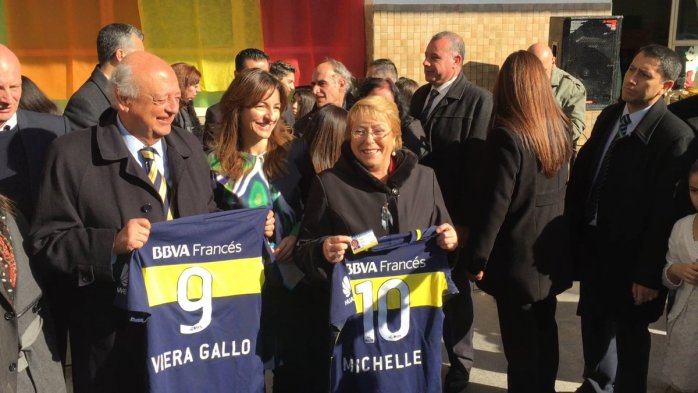 En el marco de su visita oficial a Argentina, la Presidenta Michelle Bachelet recibió este jueves un carné que la acredita como socia honoraria del club de fútbol Boca Juniors. La Mandataria recibió una camiseta con su nombre y el número 10 de Diego Armando Maradona y Juan Román Riquelme. El embajador José Antonio Viera-Gallo obtuvo la 9.