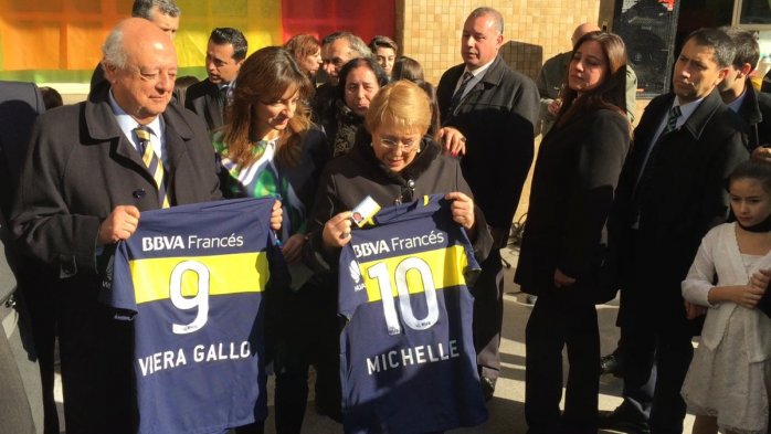 En el marco de su visita oficial a Argentina, la Presidenta Michelle Bachelet recibió este jueves un carné que la acredita como socia honoraria del club de fútbol Boca Juniors. La Mandataria recibió una camiseta con su nombre y el número 10 de Diego Armando Maradona y Juan Román Riquelme. El embajador José Antonio Viera-Gallo obtuvo la 9.
