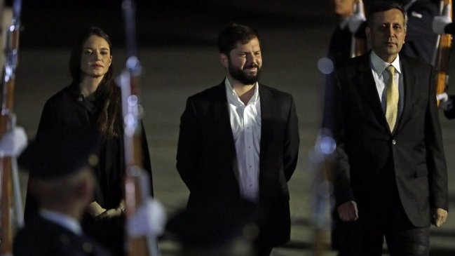 Boric aterrizó en Bogotá pasada las 21:00 acompañado por la ministra de Relaciones Exteriores, Antonia Urrejola, y la primera dama, Irina Karamanos, coordinadora Sociocultural de la Presidencia.