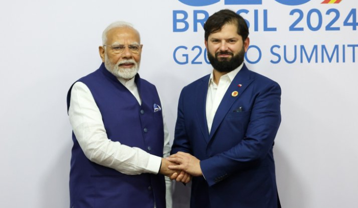 El Presidente Boric se reunió con el primer ministro indio, Narendra Modi, en los márgenes de la reunión anual del G20 realizada en 2024 en Brasil en noviembre de 2024. Foto: Gobierno de Chile