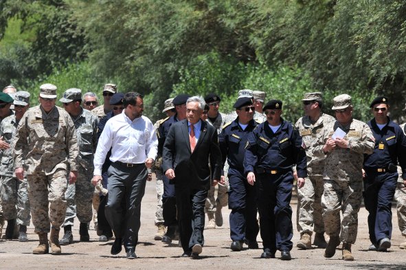 El Presidente Sebastián Piñera, acompañado del ministro de Defensa, Rodrigo Hinzpeter, presenció ejercicios militares en Iquique, donde destacó el aporte de las Fuerzas Armadas "al desarrollo del país y a la calidad de vida de los chilenos”.
