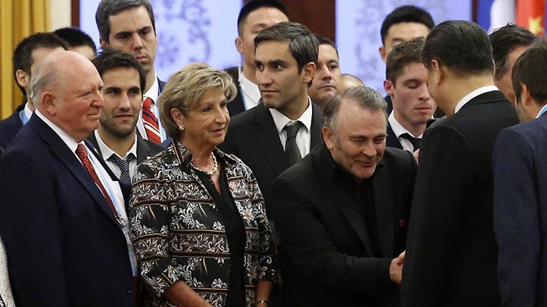 Cristóbal y Sebastián Piñera Morel junto a la comitiva chilena saludando al Presidente de China, Xi Jinping (Foto: ATON)