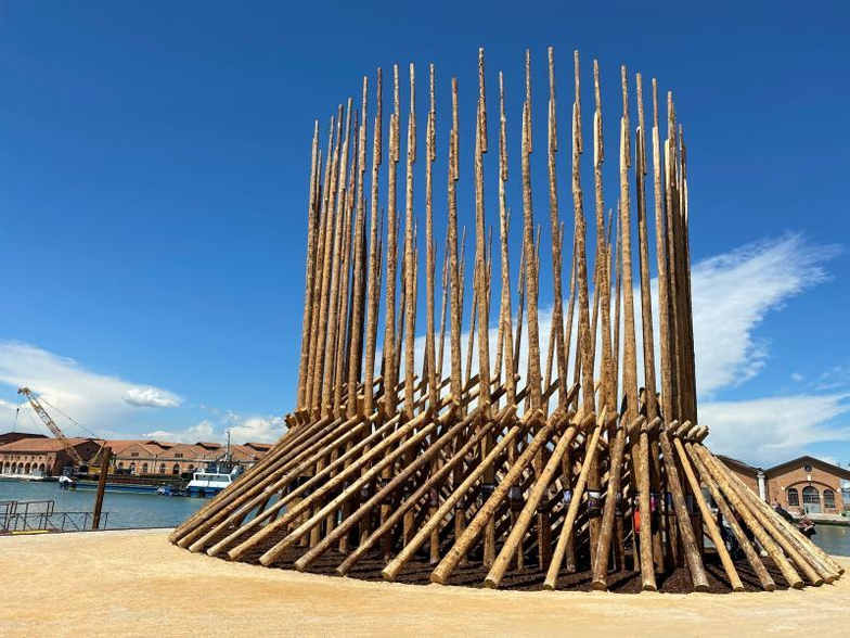 Hasta la Bienal veneciana, en concreto hasta los antiguos astilleros del Arsenale, trae la recreación de un proyecto que el estudio Elemental comenzó a construir en 2019 "en el sur de Chile, en la Región de la Araucanía, que es donde está el conflicto", precisamente a petición de un grupo de esta comunidad.