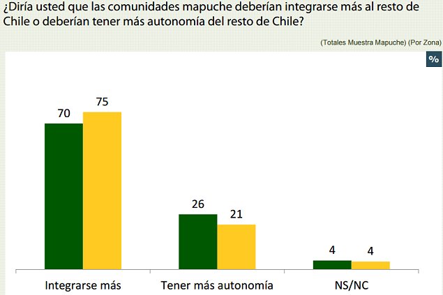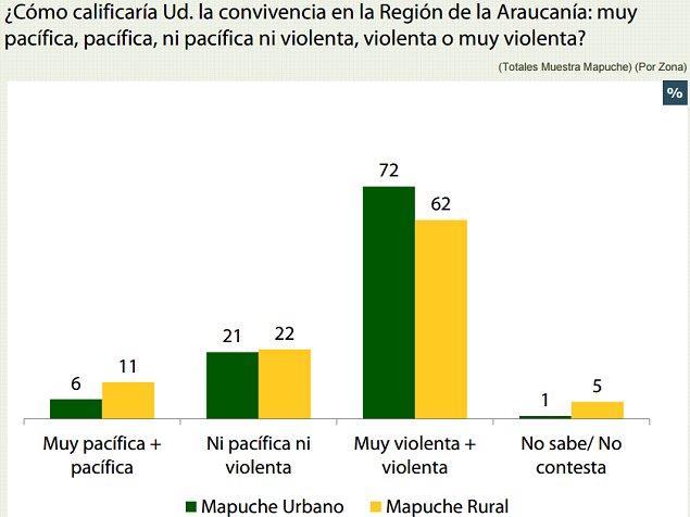 De hecho, una gran mayoría de los mapuche piensa que la convivencia en la Región de La Araucanía es "violenta" o "muy violenta".