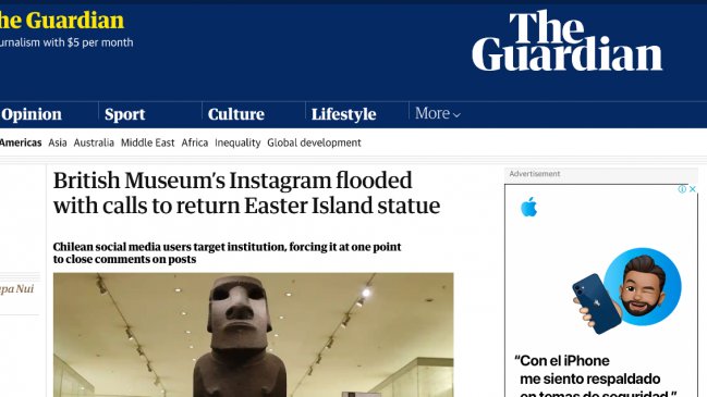 Uno de los medios más prestigiosos del mundo, The Guardian, dio cuenta de los cientos de comentarios de chilenos en los distintos post de redes sociales del Museo Británico.