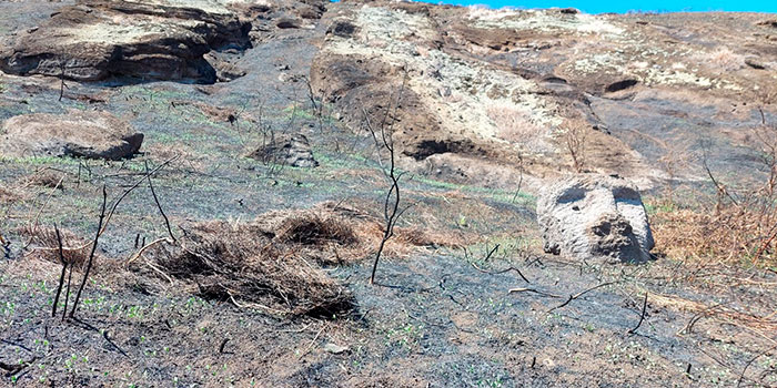 El incendio del pasado 4 de octubre se extendió por un área aproximada de 240 hectáreas, afectando el cráter, la cantera y las inmediaciones del volcán Rano Raraku.