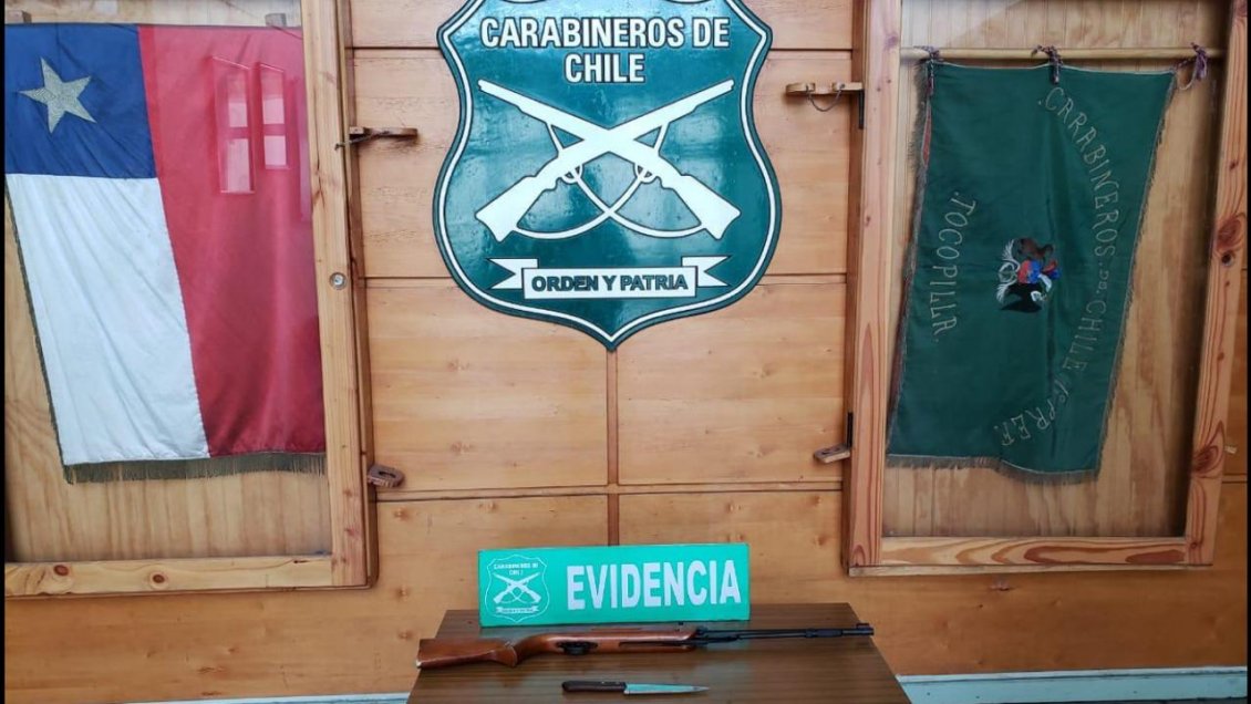 Luego de algunos minutos, Carabineros logró entrar al lugar, reducir al individuo y detenerlo, constatando que mantiene antecedentes penales por robo por sorpresa, intimidación y en lugar habitado, amenazas y porte con arma blanca y falta de respeto a la autoridad.
