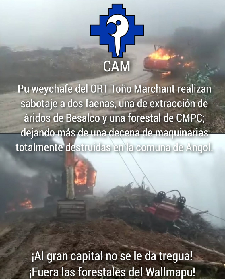La autoría de ambos ataques se la adjudicó el Órgano de Resistencia Territorial "Toño Marchant", de la Coordinadora Arauco Malleco.