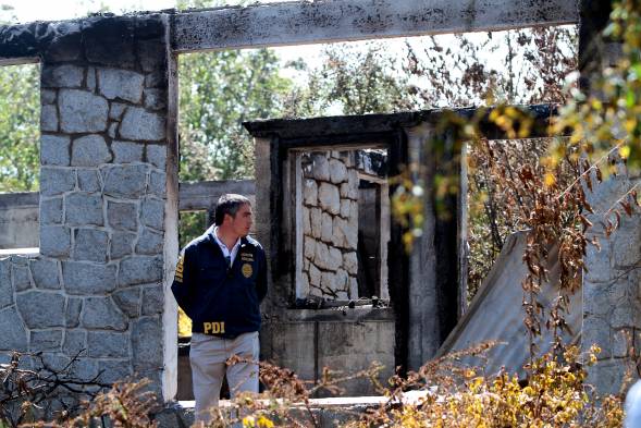 El Presidente Sebastián Piñera visitó la siniestrada casa patronal donde perdieron la vida Werner Luchsinger y Vivianne Mackay luego de un ataque incendiario a manos de desconocidos.