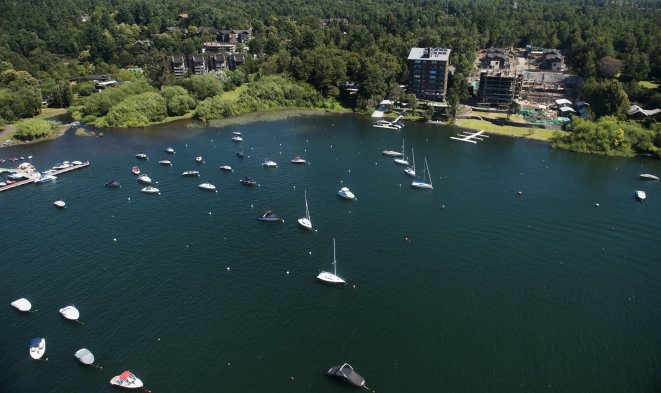 Centenares de turistas visitan la Playa Grande de Pucón, en la Región de La Araucanía, donde pueden disfrutar de bicicletas acuáticas, kayak y apreciar de fondo la vista del Volcán Villarrica.