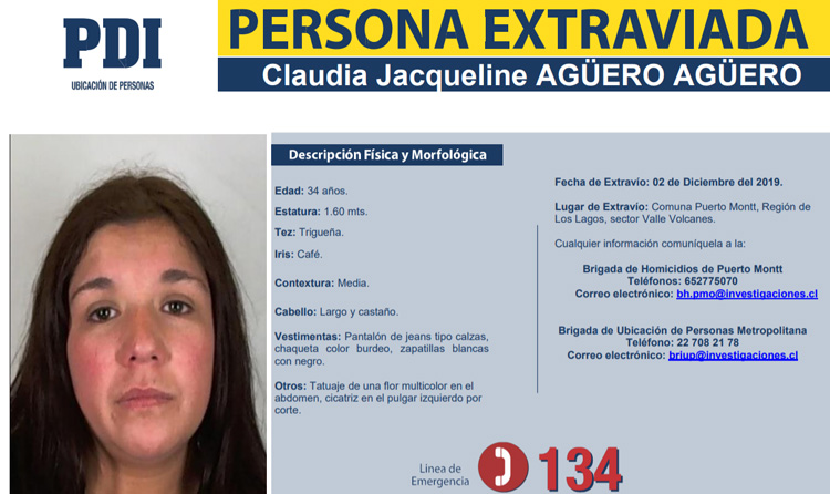 Los análisis del Servicio Médico Legal descartaron que las osamentas encontradas el fin de semana pertenezcan a Claudia Agüero, cuyo rastro está perdido desde diciembre.