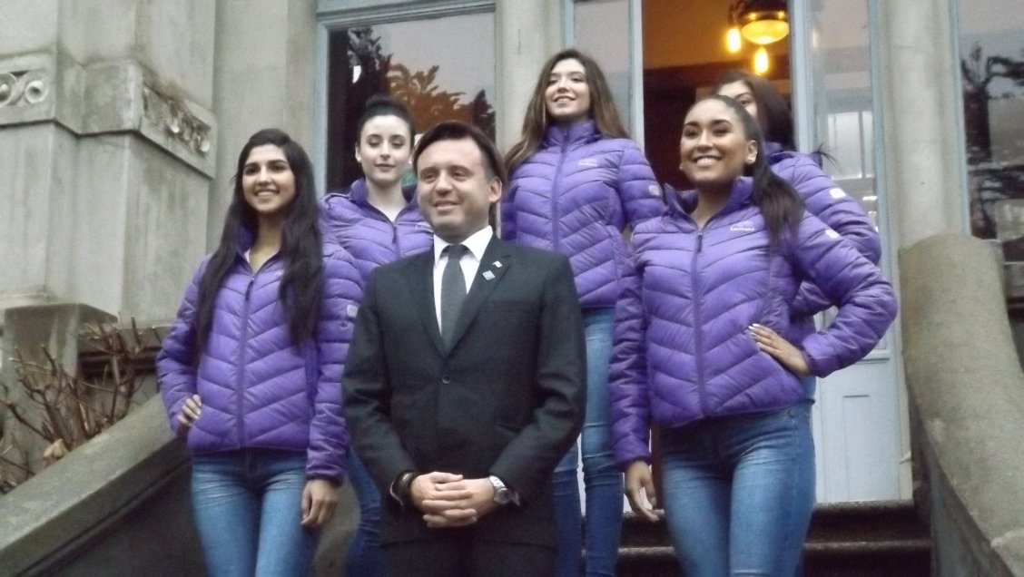 Las aspirantes al cetro de belleza junto al alcalde de Punta Arenas, Claudio Radonic